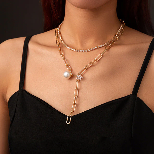 Layer with chokers or longer chains for a trendy, eclectic look